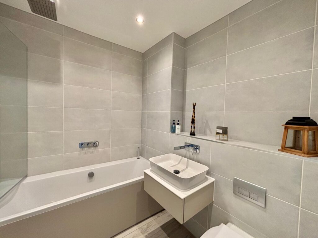 White suite comprising of a wash hand basin, W.C. and bath with shower over, fully tiled walls, radiator and ceiling light point.