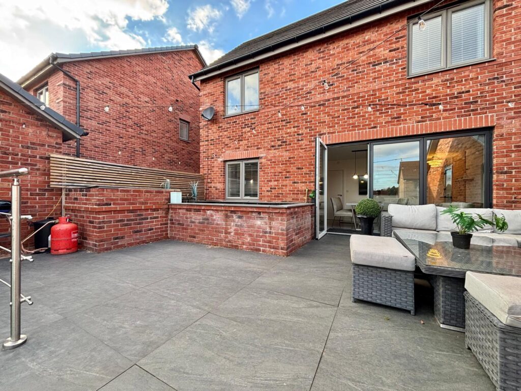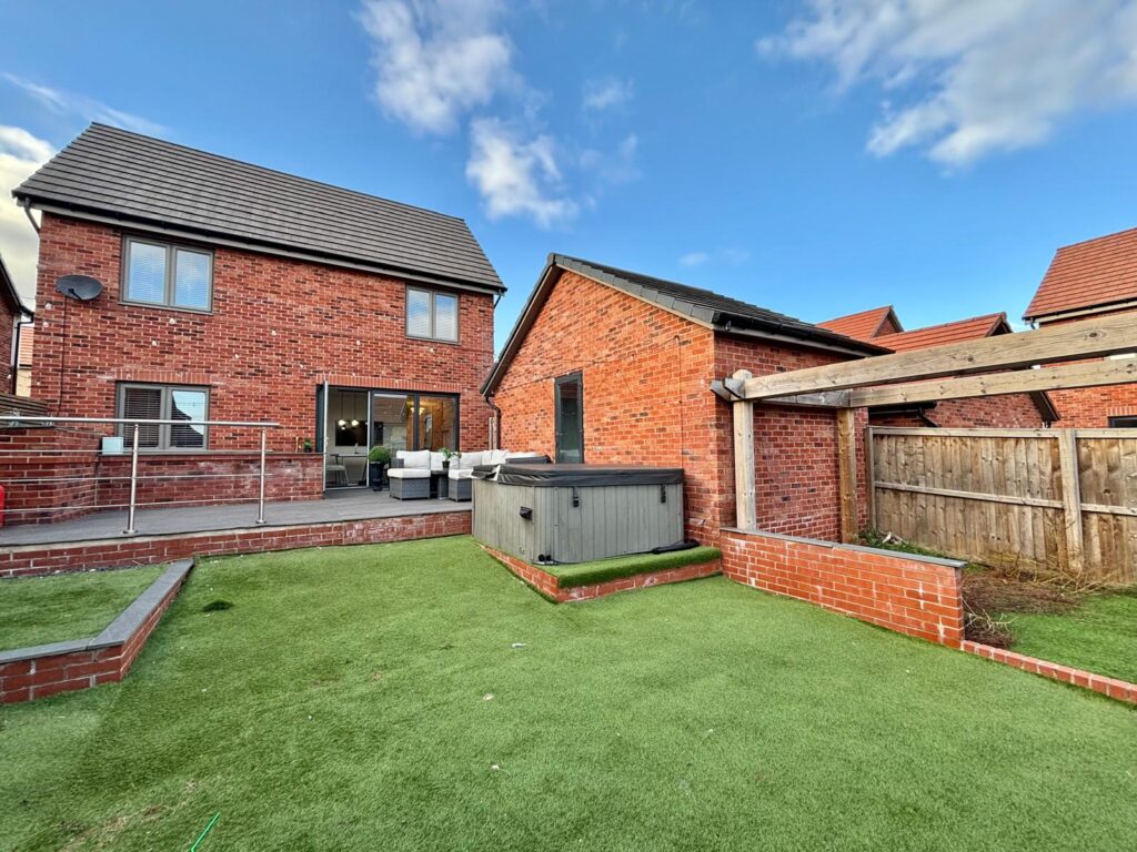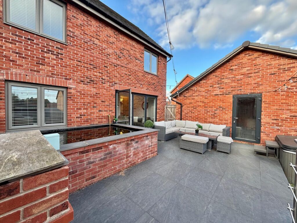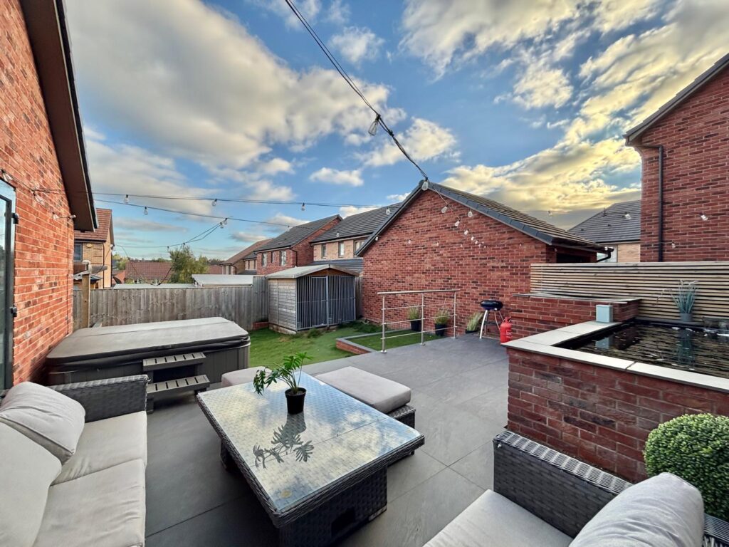 To the rear of the property there is a good sized garden with a large patio area and a section of lawn, side access to the garage, a brick built raised pond all enclosed with fences and brick walls. To the front of the property there is a driveway providing off street parking.