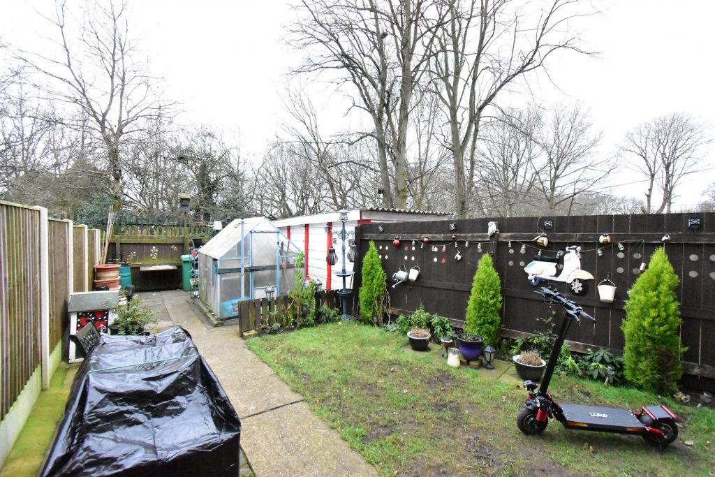 To the rear of the property there is a small laid to lawn garden and a driveway running the length of the property with a garage at the end. To the rear of the property there is an easy to maintain garden with a pathway to the far end and a small laid to lawn section, all enclosed with fences.