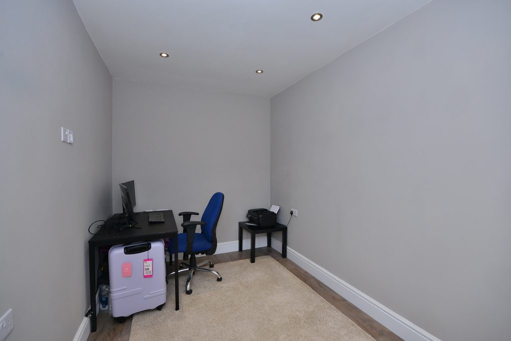 Ideal for working from home, the study has a UPVC double glazed window to the front, thermostatically controlled radiator, deep skirting boards, power points, ceiling spot lights and laminate flooring.