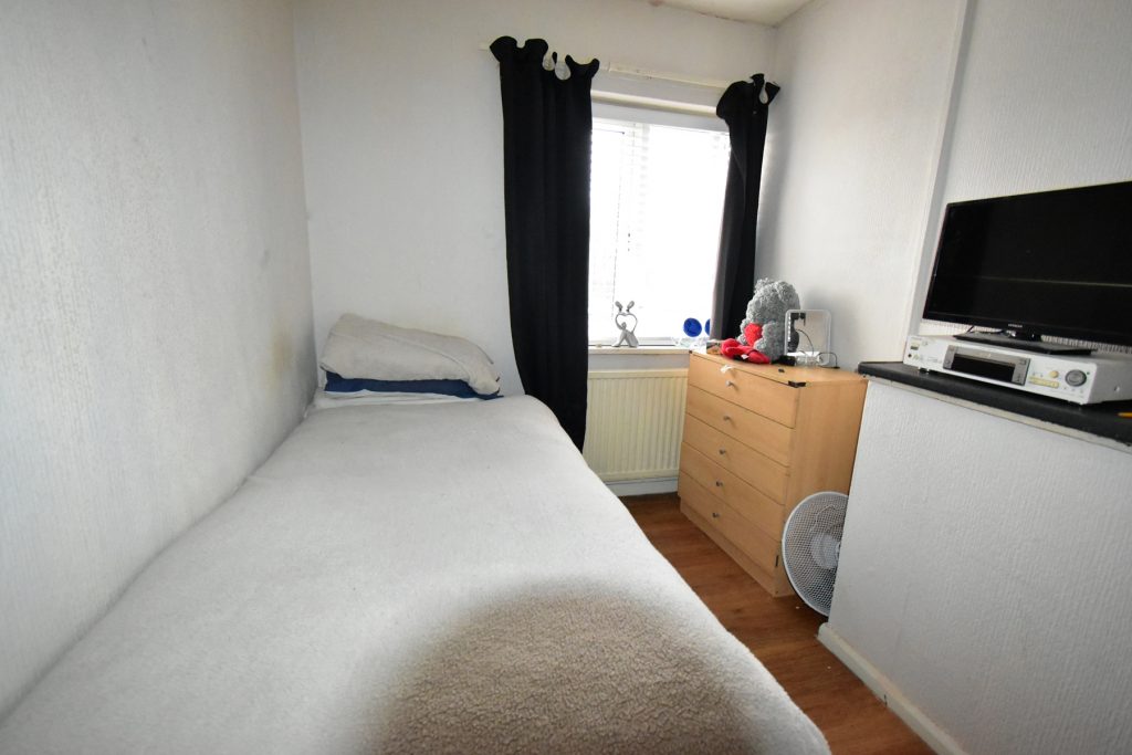 With double glazed window to the rear, radiator, ceiling light point, power points and fitted cupboard housing the combi boiler.