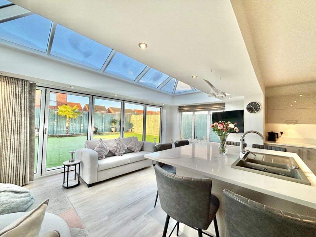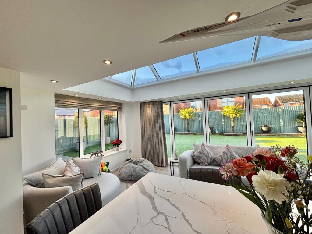 Benefits from two radiators, laminate flooring, down lights, window to both side elevation, sky light and Bi-fold doors leading outside.