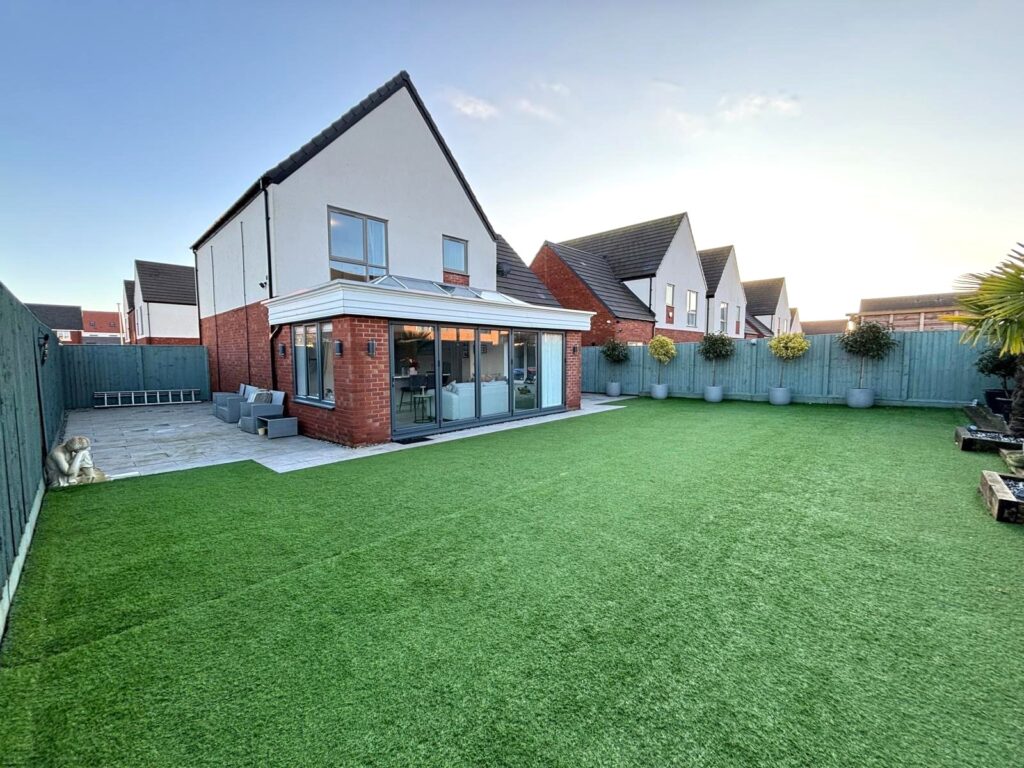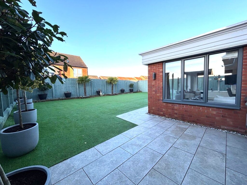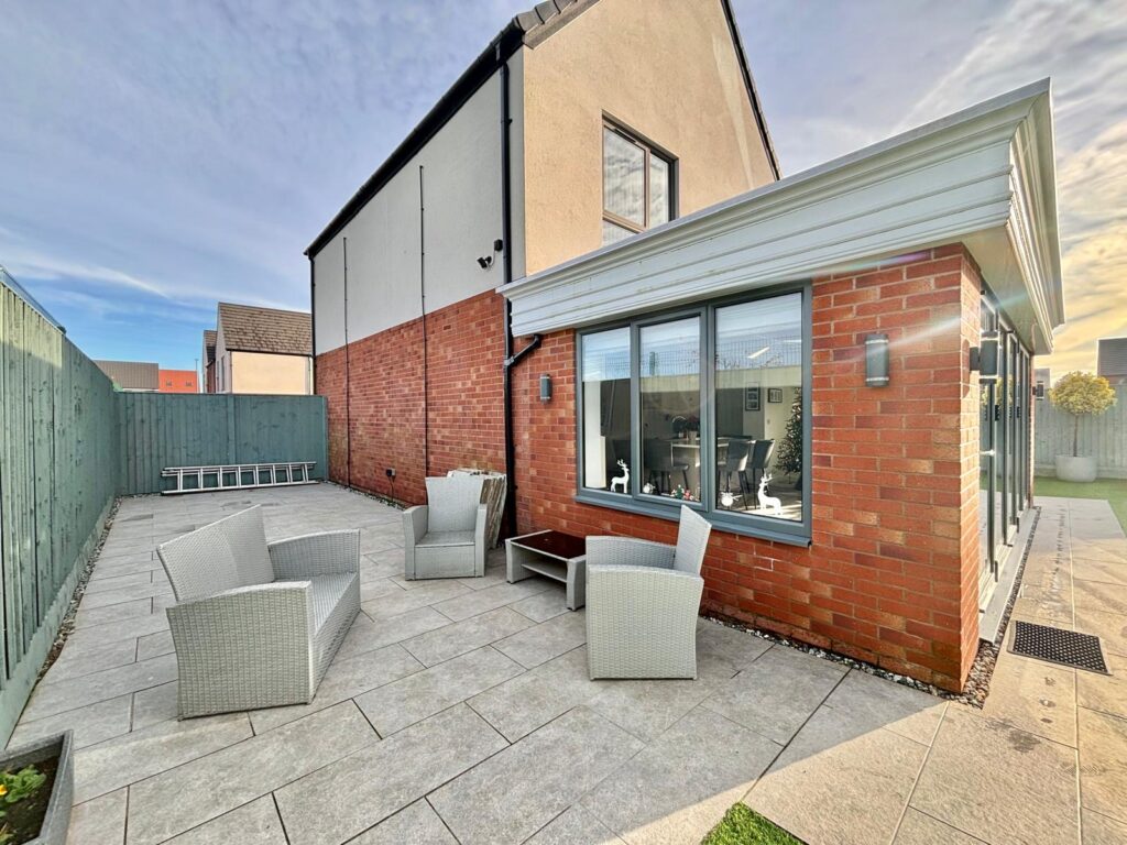 Offering a landscaped garden to the rear with an artificial lawn and a spacious patio seating area with a surrounding fence. The outside space also benefits from a double outdoor power point and an outside tap. Patio on the right elevation wraps to front elevation.