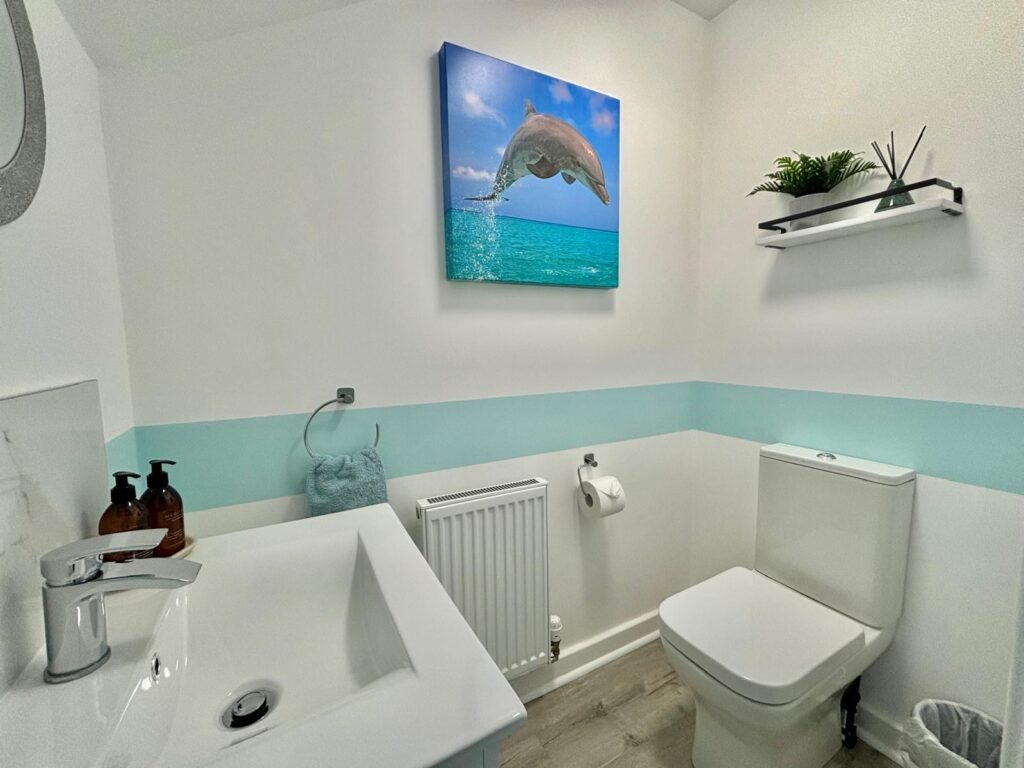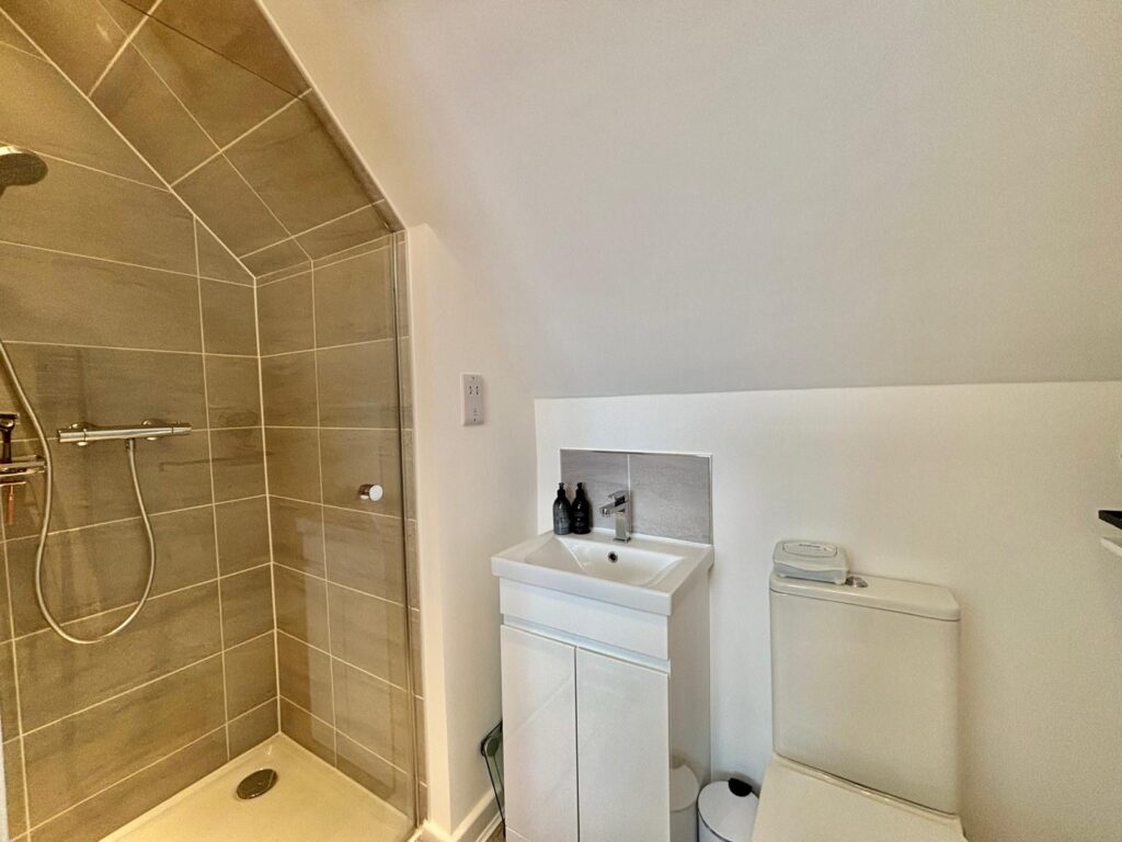 Fitted with a modern three-piece suite with shower, hand wash basin and low flush WC. Along with vanity storage, electric heated towel rail and ceiling light point.