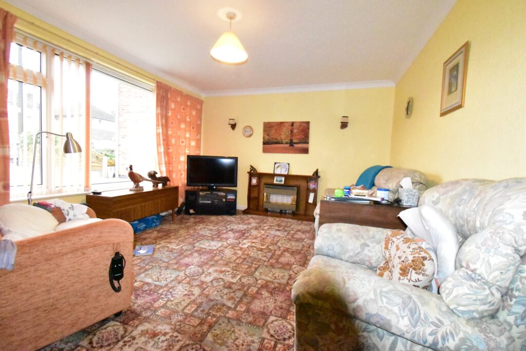 A spacious family room with UPVC double glazed window to the front, feature fireplace, radiator, power and ceiling light points.