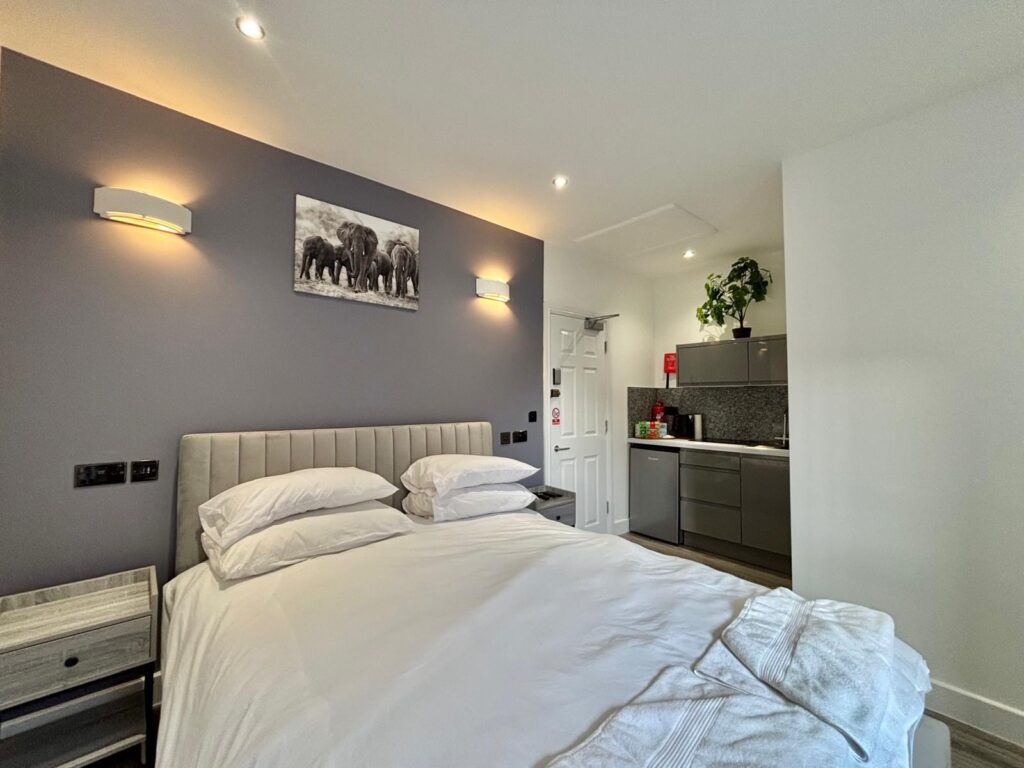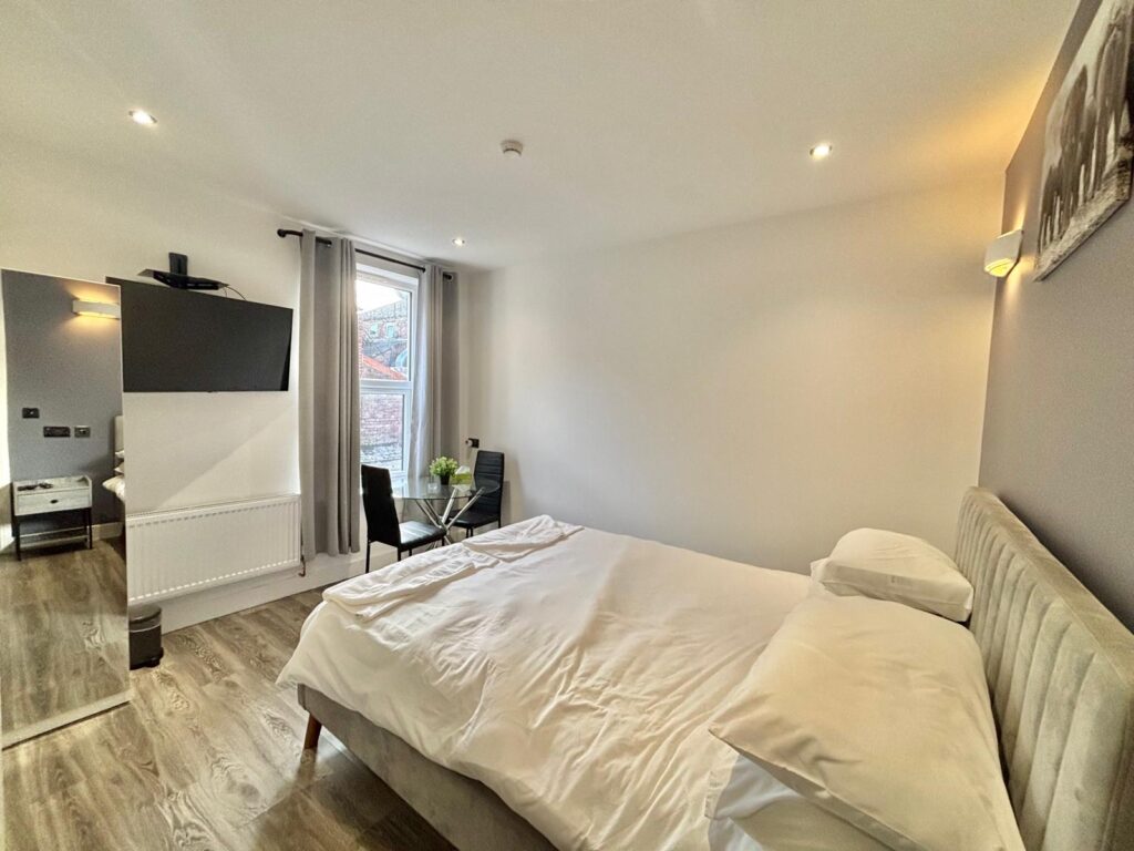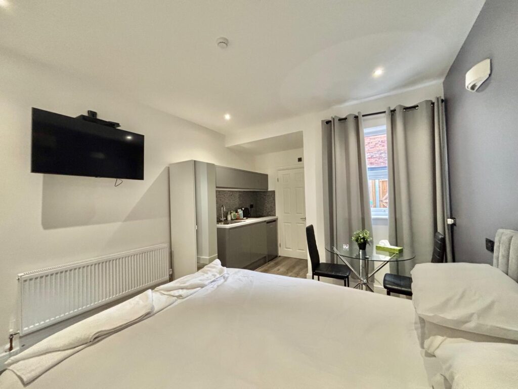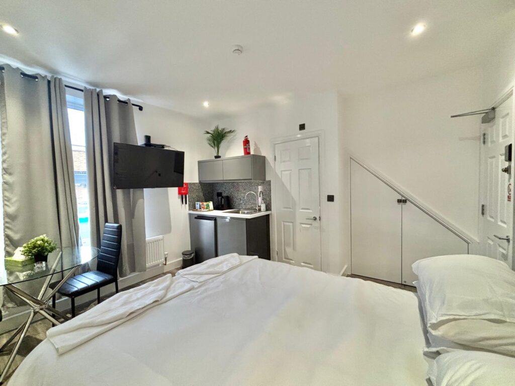 With UPVC double glazed window to the front, kitchen area comprising of wall and base units in a grey finish with coordinating work surfaces, part wall panelling, space and plumbing for a fridge freezer, four ring hob, extractor fan, single drainer sink with mixer tap, radiator, power and ceiling light points.