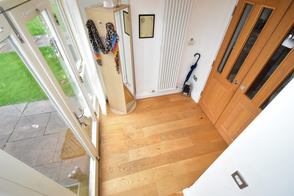 This fabulous entrance hall has ample space to take off your shoes and coats and offers a warm welcome with its stylish column radiator. There is a wooden floor and the hallway gives access to the living room, W.C and stairs to the first floor.