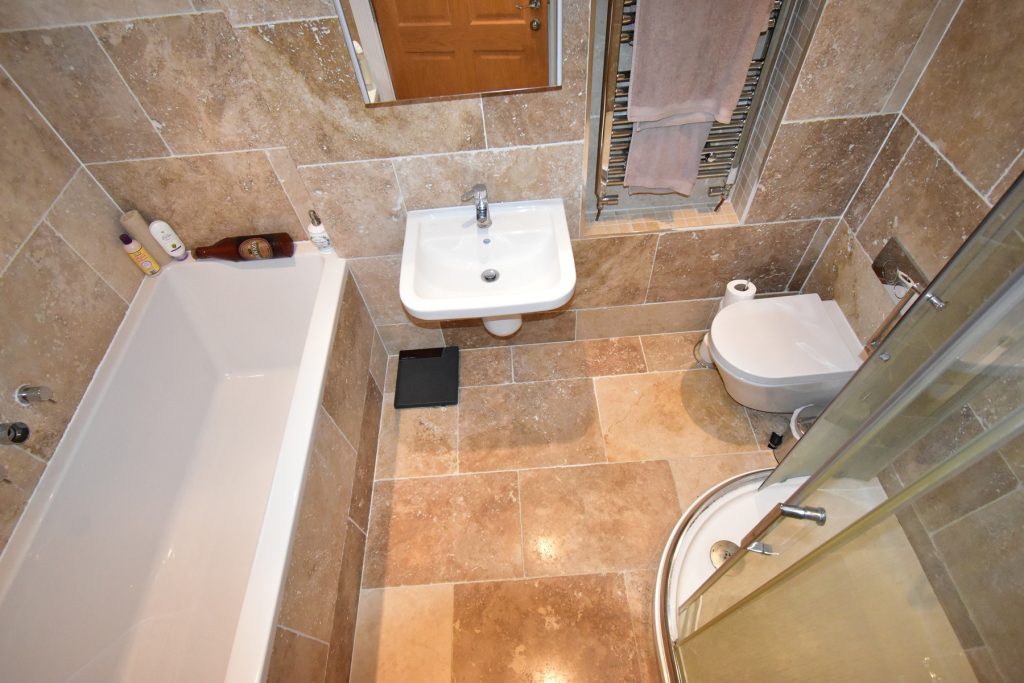 This modern bathroom has the benefit of both wall and floor tiling and has been fitted with a four-piece white suite to include deep double ended bath with wall mounted mixer taps, quadrant shower cubicle, wall mounted wash-hand basin and W.C with integrated flush. There is a feature porthole window, large towel rail radiator and ceiling light point.