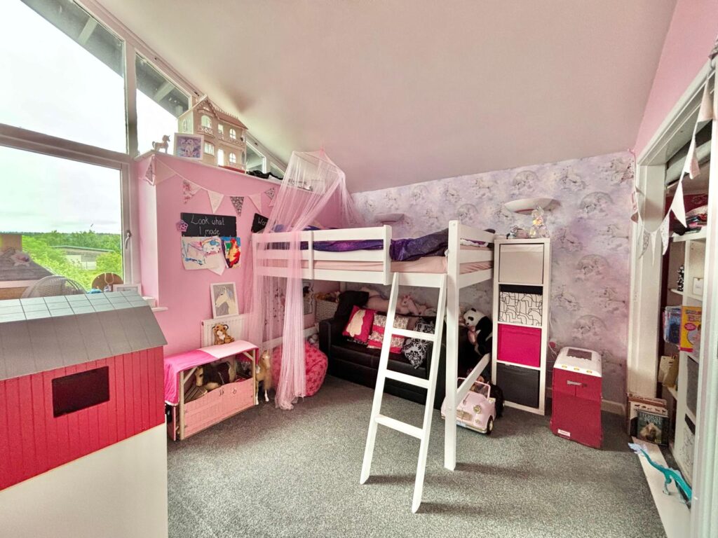 With UPVC double glazed window to the rear, access to balcony, fitted wardrobes, access to ensuite, radiator, power and ceiling light points.