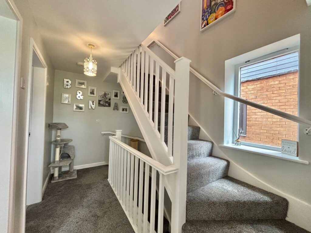 With stairs to the second floor landing, access to two bedrooms, UPVC double glazed window to the side and ceiling light point.