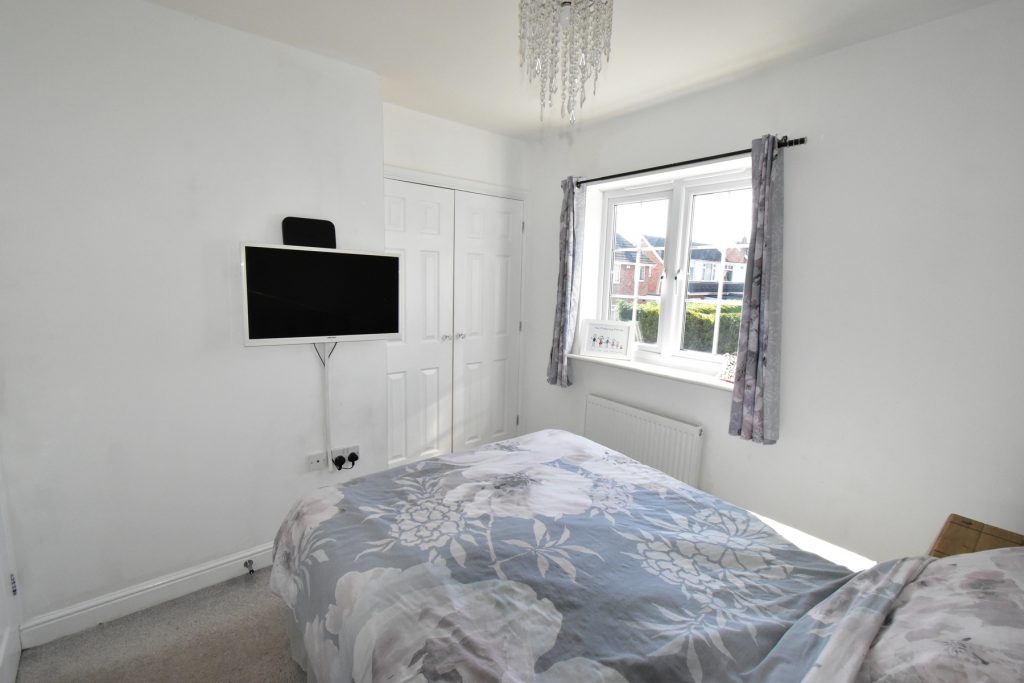 With window to the rear, fitted wardrobe, radiator, power and ceiling light points.