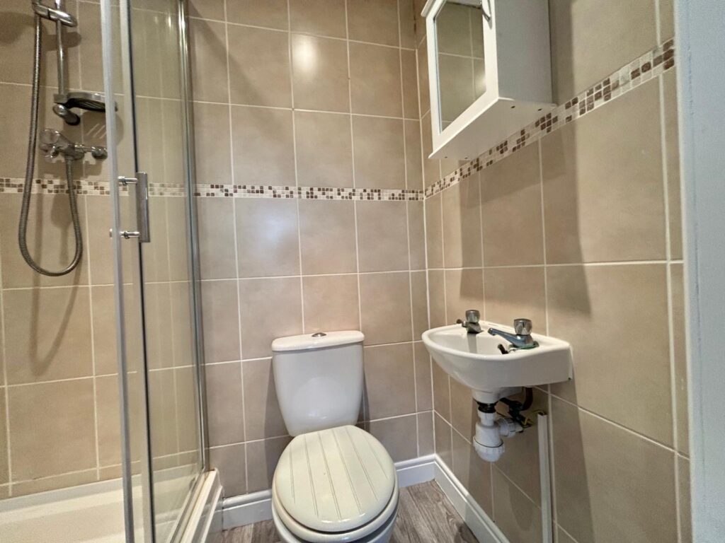 With wash hand basin, W.C. and shower cubicle, radiator and ceiling light point.