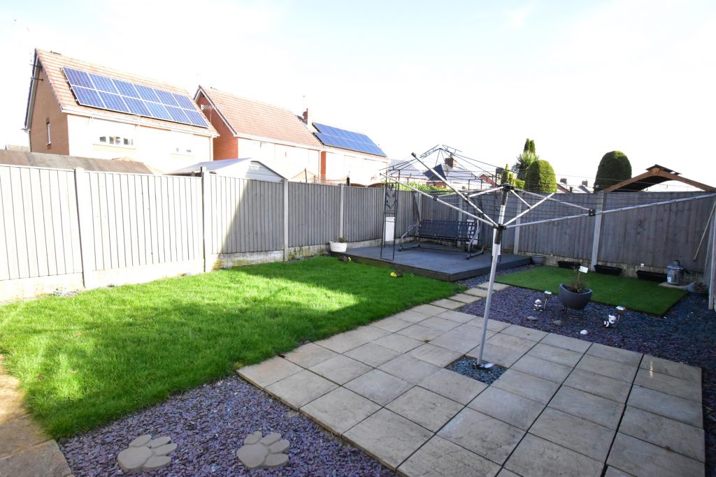The rear garden is enclosed and is south facing, with a patio area, decked area, lawn area and hard standing for shed. There are also solar panels, but more information can be provided upon request.