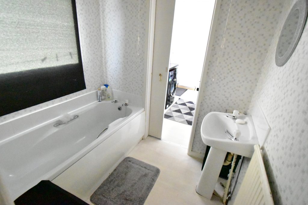 The bathroom has been fitted with a white panelled bath and pedestal wash hand basin with tiled splash back. There UPVC double glazed window to the side, radiator, ceiling light point and a door to a separate W.C with a further radiator.