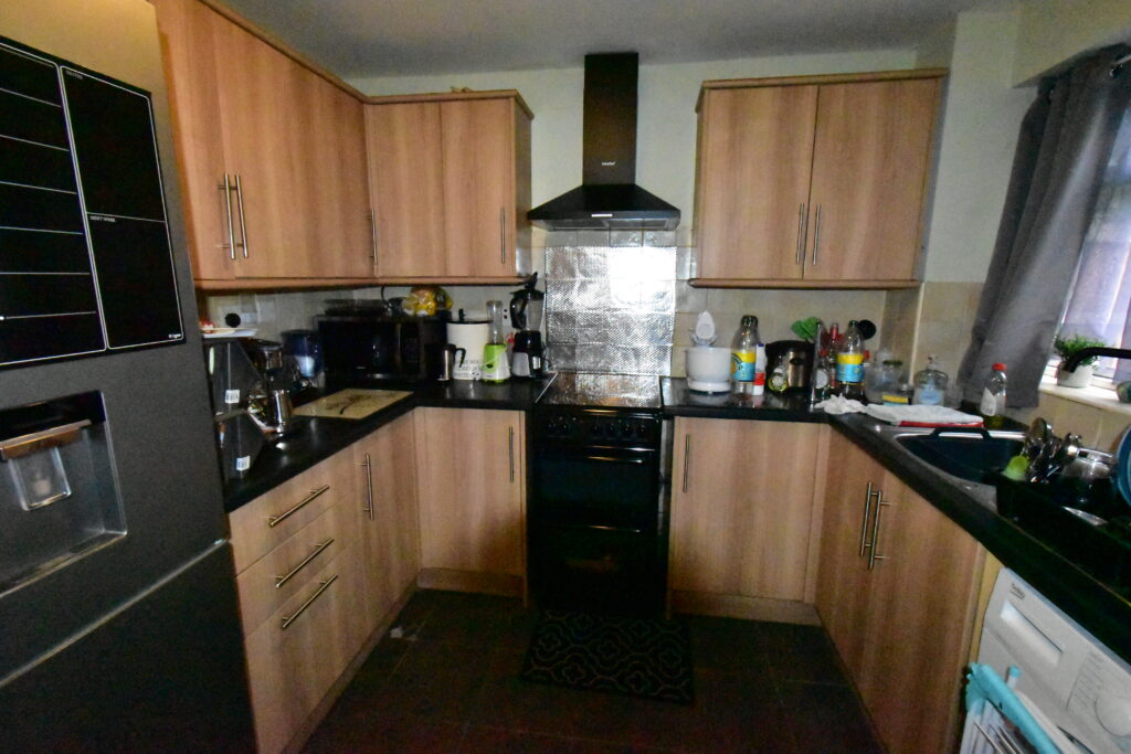 Fitted with a range of wall and base units, oven, extractor, wash basin with