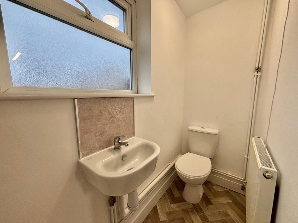 With wash hand basin, W.C., UPVC double glazed opaque window to the rear, radiator and ceiling light point.