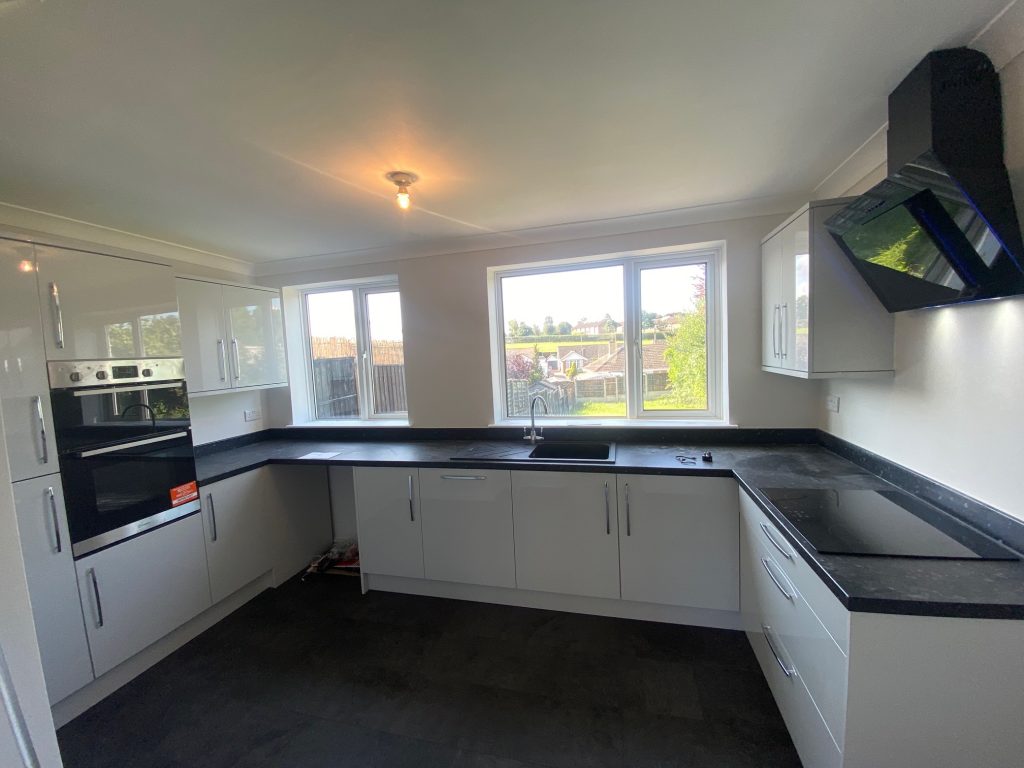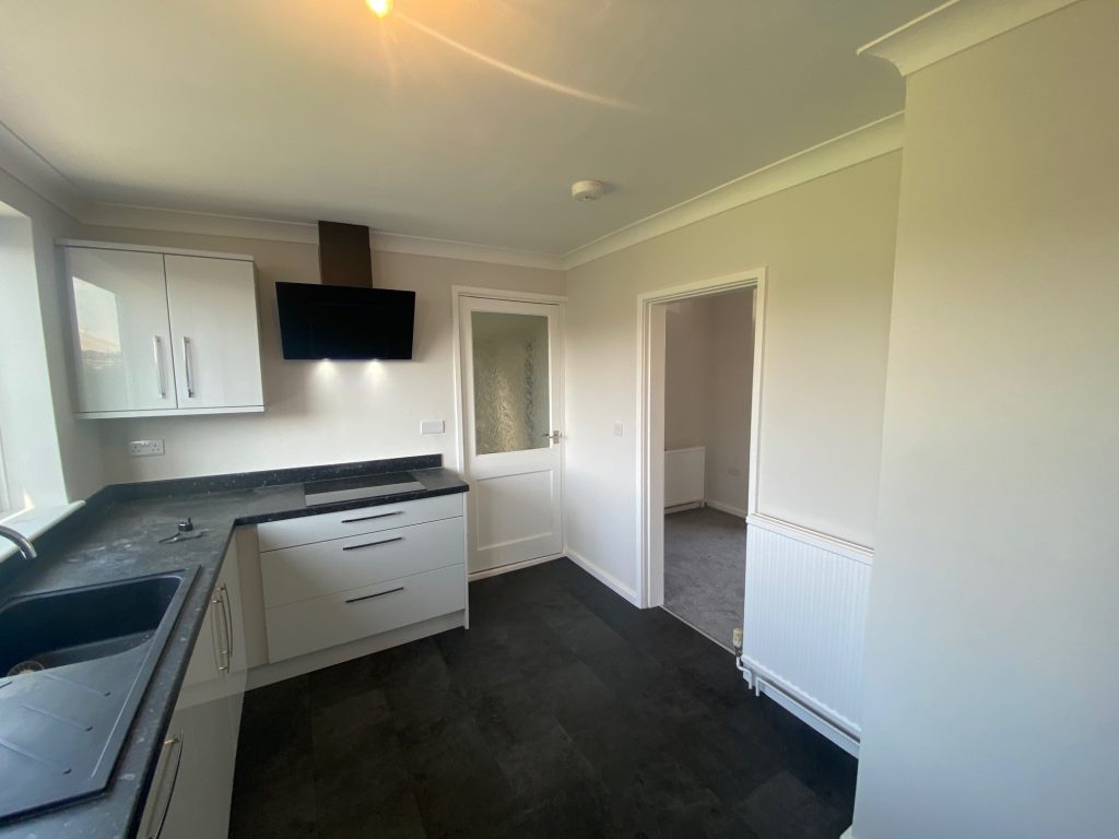 This modern, newly refitted kitchen has a range of matching wall and base units to include an integrated fridge-freezer, oven, grill and dishwasher. There is a composite sink with stainless steel mixer tap, coordinating granite effect work surfaces, four ring electric induction hob with extractor fan over, space and plumbing for washing machine, two UPVC double glazed windows to the rear, thermostatically controlled radiator, power points, ceiling coving and ceiling light point.