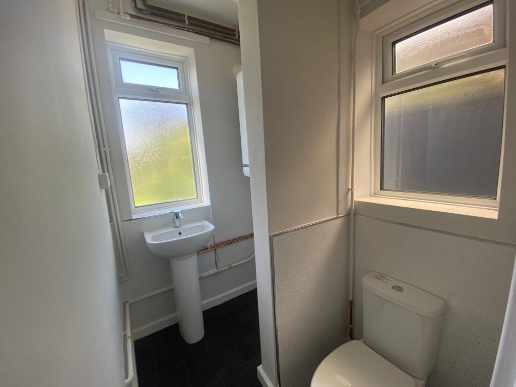 With newly refitted close coupled W.C, pedestal wash hand basin with mixer tap, UPVC double glazed opaque windows to the side and rear, wall mounted boiler and ceiling light point.