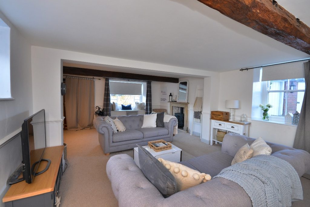 Providing a warm welcome to the property, the entrance hallway has a radiator, beamed ceiling, window to the front elevation and stairs to the first-floor landing.
