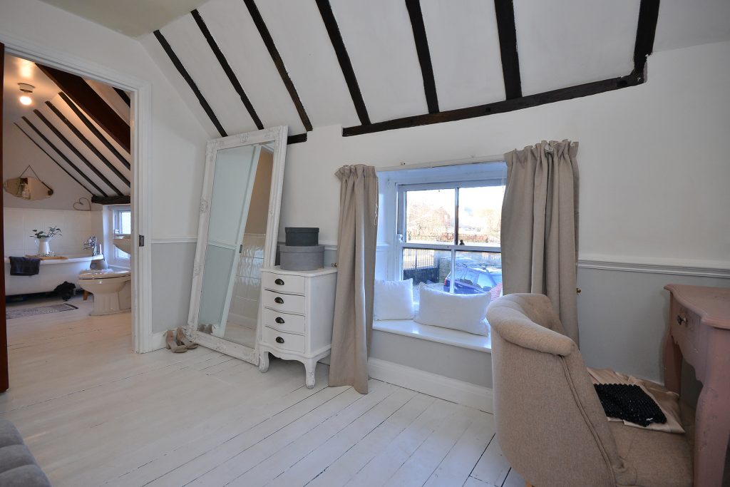A further double bedroom with a radiator and window to the front elevation with a window seat.