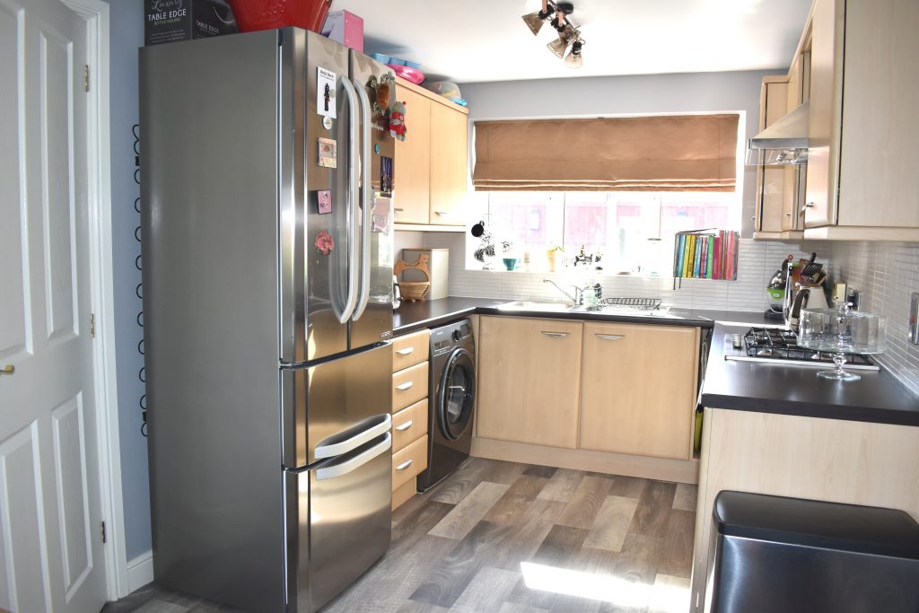 Fitted with a range of wall and base units with work surfaces over, sink and drainer, tiled splashbacks, gas hob and electric oven with extractor fan over, space for washing machine and fridge/freezer, front and rear elevation double glazed windows and radiator.
