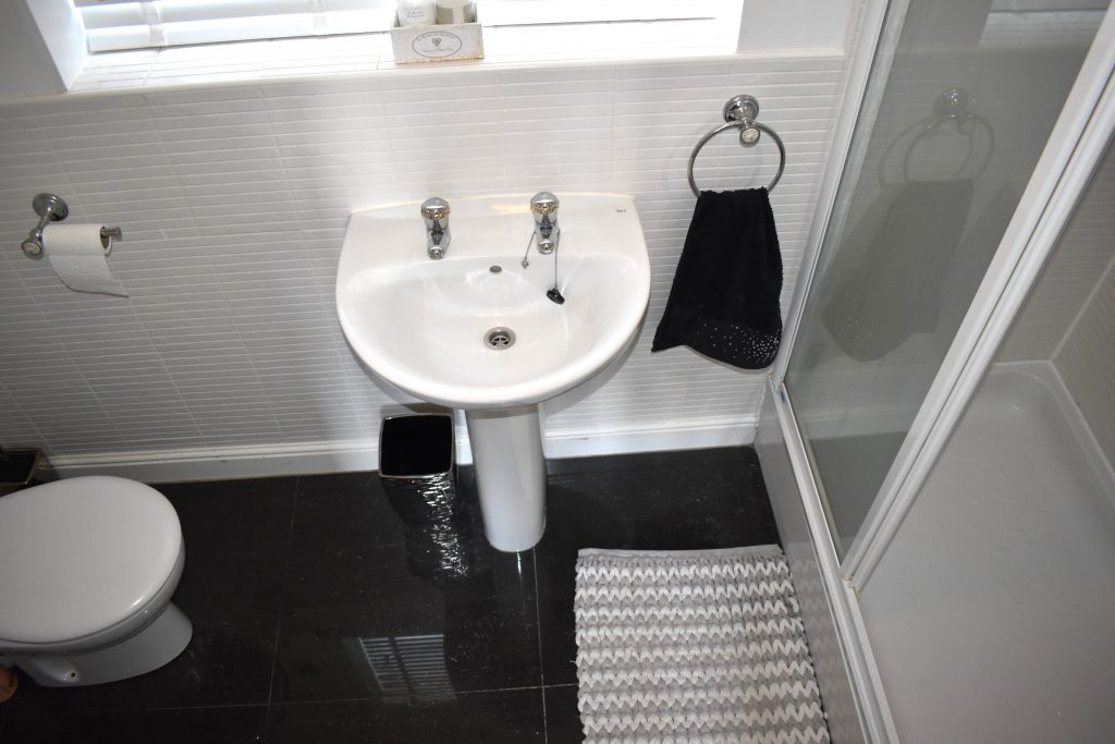 Fitted with a white suite comprising of shower cubicle, low level WC and pedestal wash hand basin. Part tiled walls, radiator, obscure window to the front elevation and extractor fan.