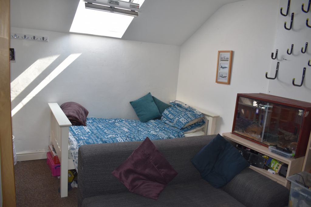 This is an attic bedroom with double glazed Velux roof window to the rear, radiator, power points and ceiling light point.