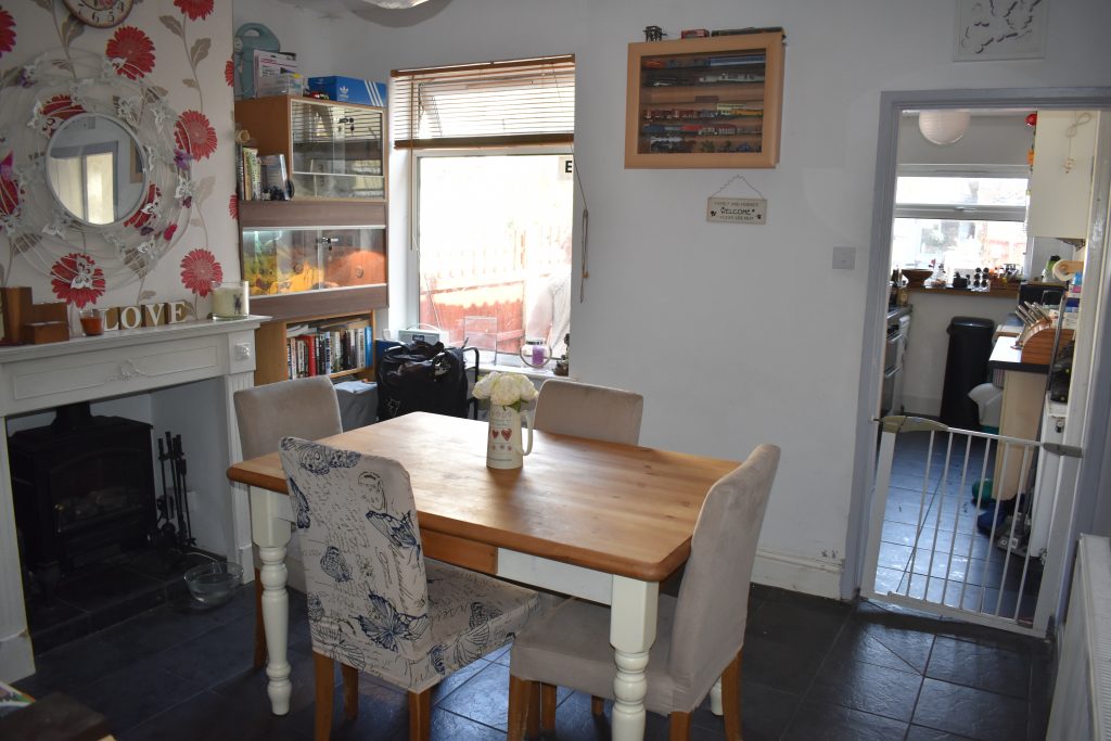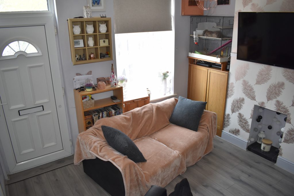 With UPVC double glazed window to the rear, feature fireplace with electric fire, radiator, power points, ceiling light point and tiled flooring.