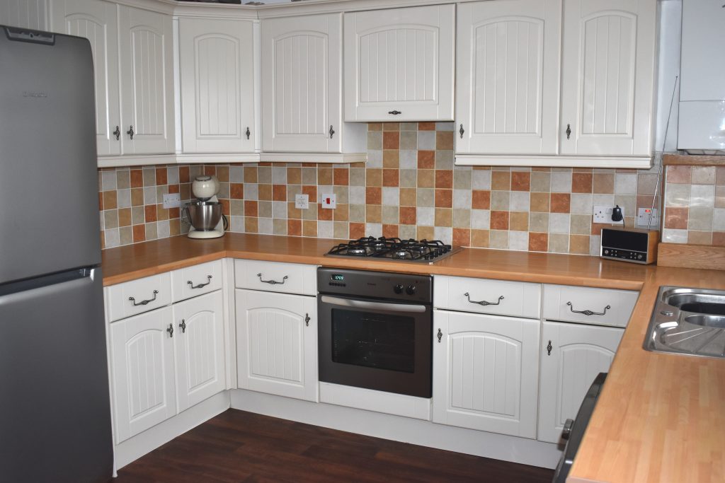 Fitted with a range of wall and base units with co-ordinating work surfaces and tiling, integrated oven, four-ring gas hob and extractor, one and a half bowl stainless steel sink with mixer tap, space and plumbing for washing machine, space for fridge freezer and UPVC double glazed window to the rear. The dining area has a UPVC double glazed window to the rear, UPVC double glazed door opening onto the rear garden, radiator and door to useful understairs storage cupboard.