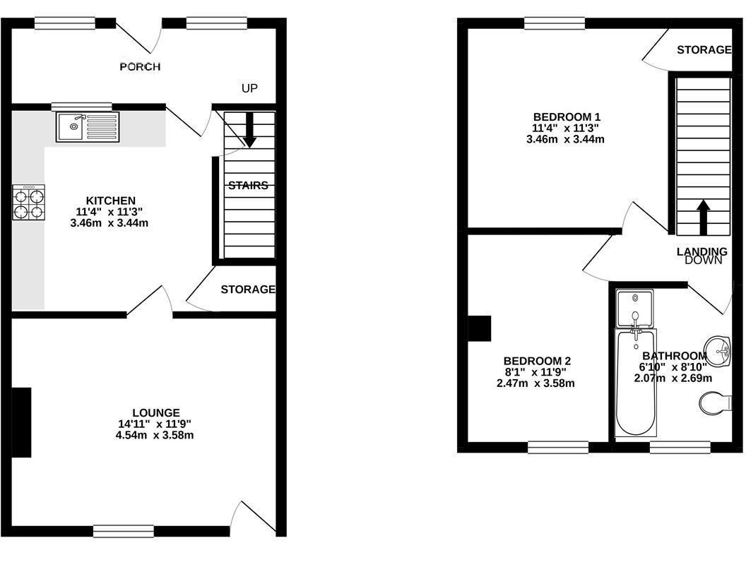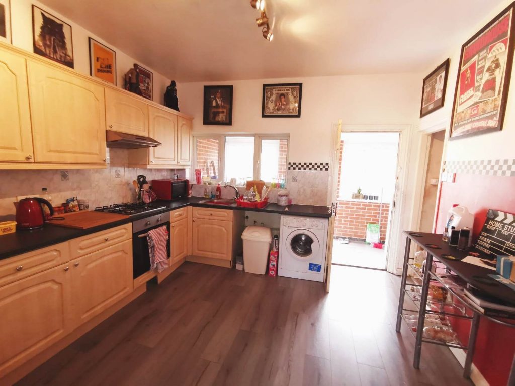 Offering plenty of storage and worktop space having been fitted with a range of wall and base units with roll top work surfaces with coordinated tiled surround. There is a stainless-steel sink with chrome mixer taps, four ring gas hob with integrated oven and grill and illuminated extractor over, space and plumbing for washing machine and space for fridge freezer. There is UPVC double glazed window to the rear, numerous power points, ceiling light point, stairs to first floor landing, access to storage cupboard and door opening into the rear porch.