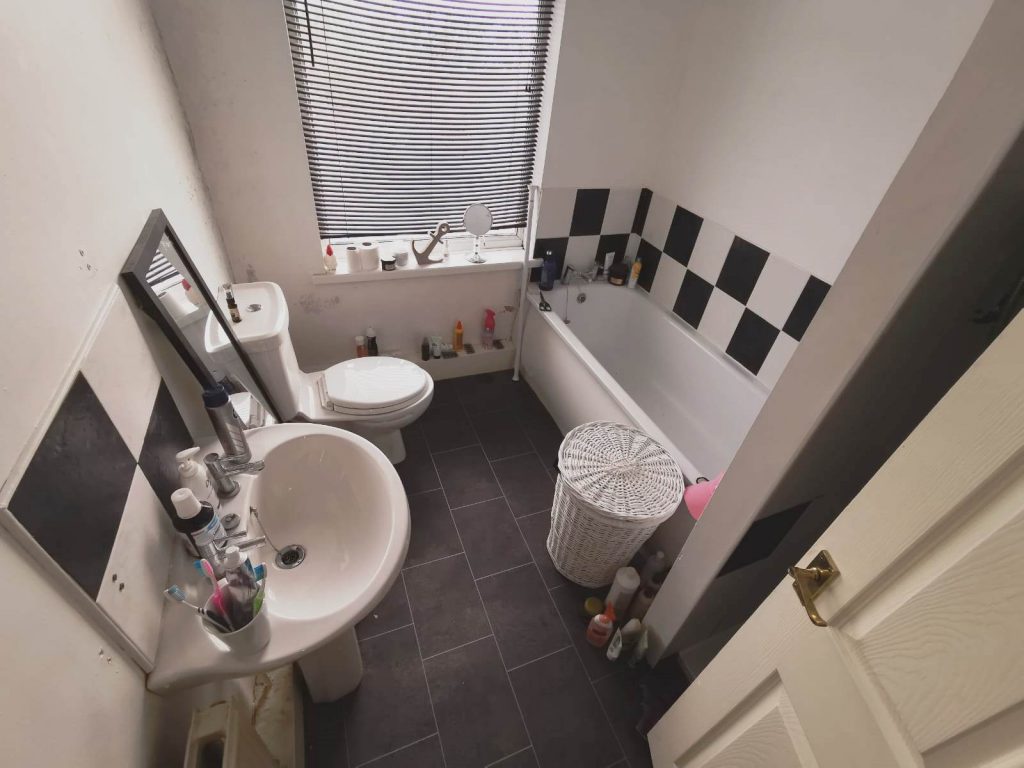 A good-sized family bathroom with four-piece white suite comprising close coupled W.C, pedestal wash hand basin, panelled bath and separate shower enclosure with electric shower. There is partial wall tiling, ceiling light point, extractor and UPVC double glazed window to the front.