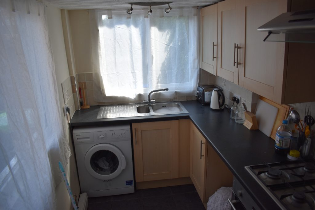 With double glazed window to the side and rear, wall and base units with work surfaces, stainless steel sink, integrated gas hob with extractor over, integrated oven, tiled surrounds, ceiling light point, power points, space and plumbing for washing machine.