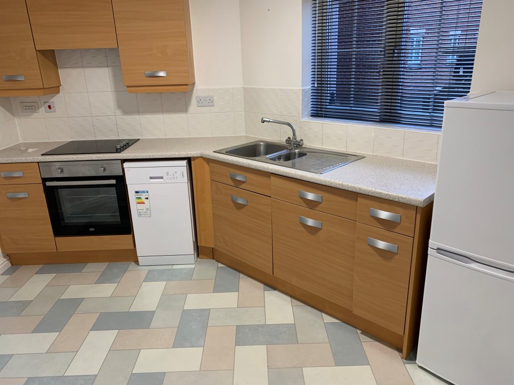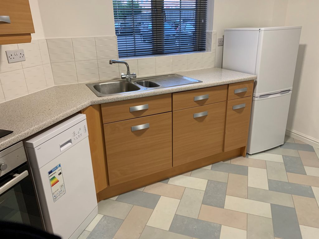 The kitchen is comprehensively fitted with a range of wall and base units with co-ordinating roll-top work surfaces and a tiled splashback. There is a one and a half bowl stainless steel sink with a mixer tap, an integrated oven and grill, electric hob, integrated washing machine, dishwasher and fridge freezer. With a UPVC double glazed window, power points and ceiling light point.