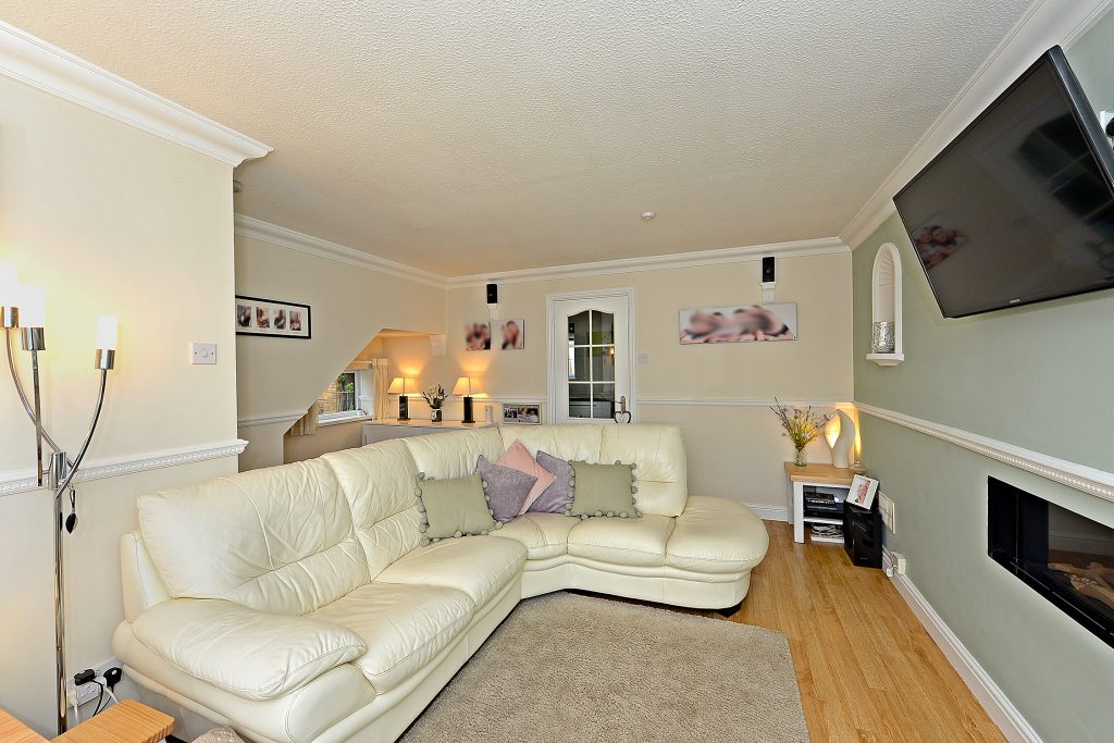 With double glazed boxed bay window to the front, recess with double glazed window to the side, designer integrated gas fireplace, radiator, ceiling coving and power points.