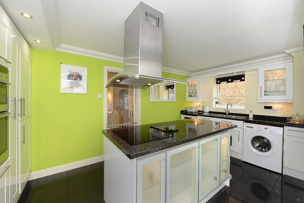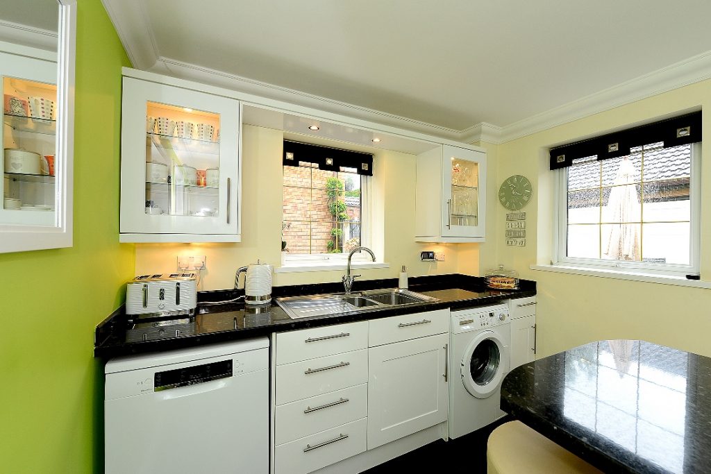 This kitchen certainly has the wow factor having been thoughtfully and individually designed to a bespoke specification. With a range of matching wall and base units, centre island with breakfast bar, granite effect roll top work surfaces and splash backs, 1 ½ bowl single drainer stainless steel sink with mixer tap, four ring electric hob with illuminating extractor fan over, integrated oven and grill, microwave, warming drawer, wine cooler and fridge-freezer, space and plumbing for washer-dryer and dishwasher, double glazed windows to the side and rear, power points, ceiling coving and various spot lights.