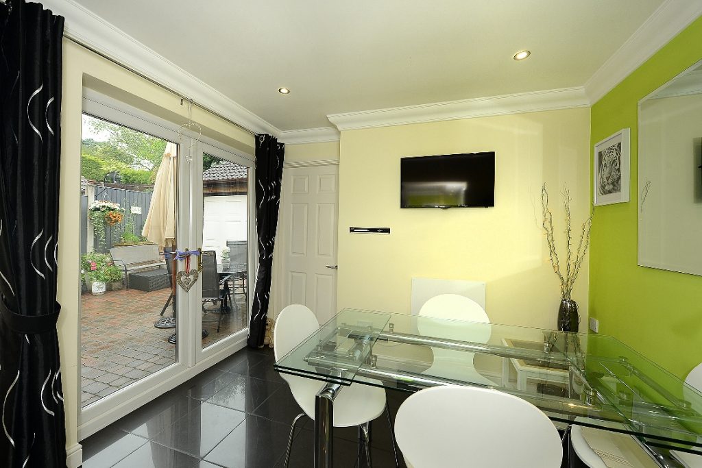 With double glazed patio doors to the side perfect for opening up in the summer months and creating an outside dining space, power points, ceiling coving and ceiling spotlights.