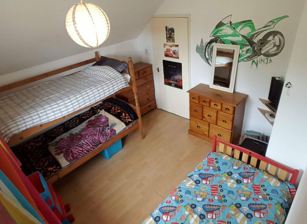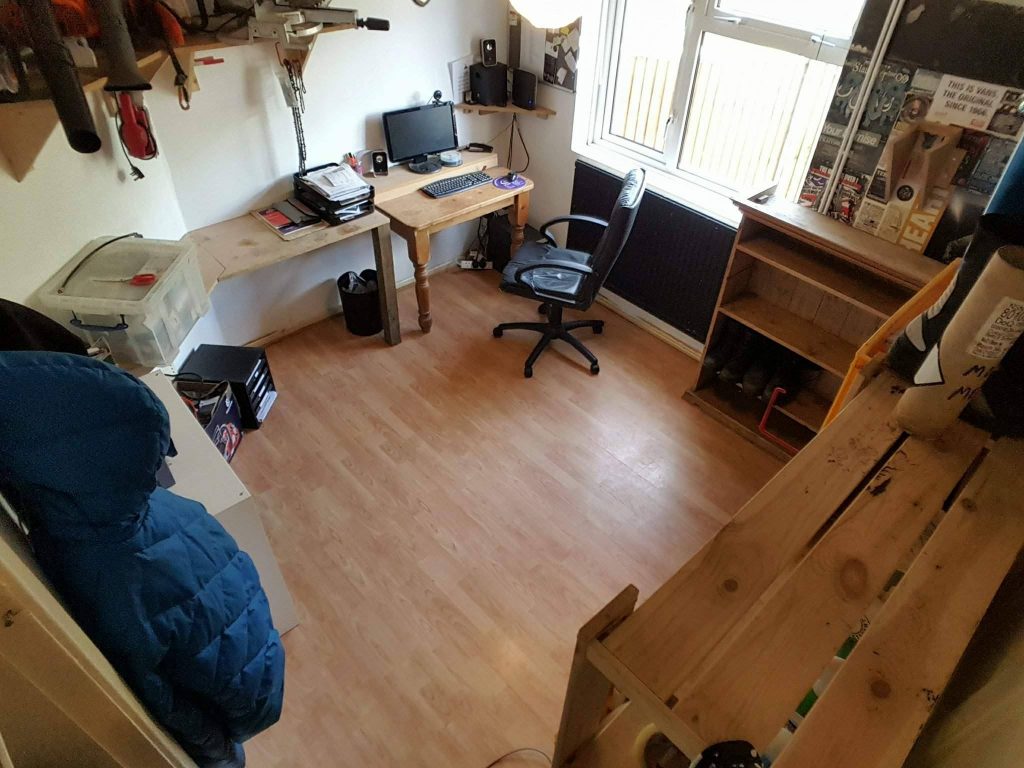 With Velux window, power point, ceiling light point and access to roof space which houses the combi boiler.