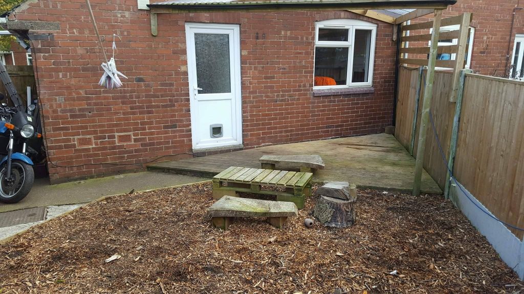 To the front of the property there is a garden with concrete area providing off street parking leading to gated access to the side and rear gardens which have been made low maintenance with bark chipping. To the rear there is a decking area and patio hardstanding for garden shed.