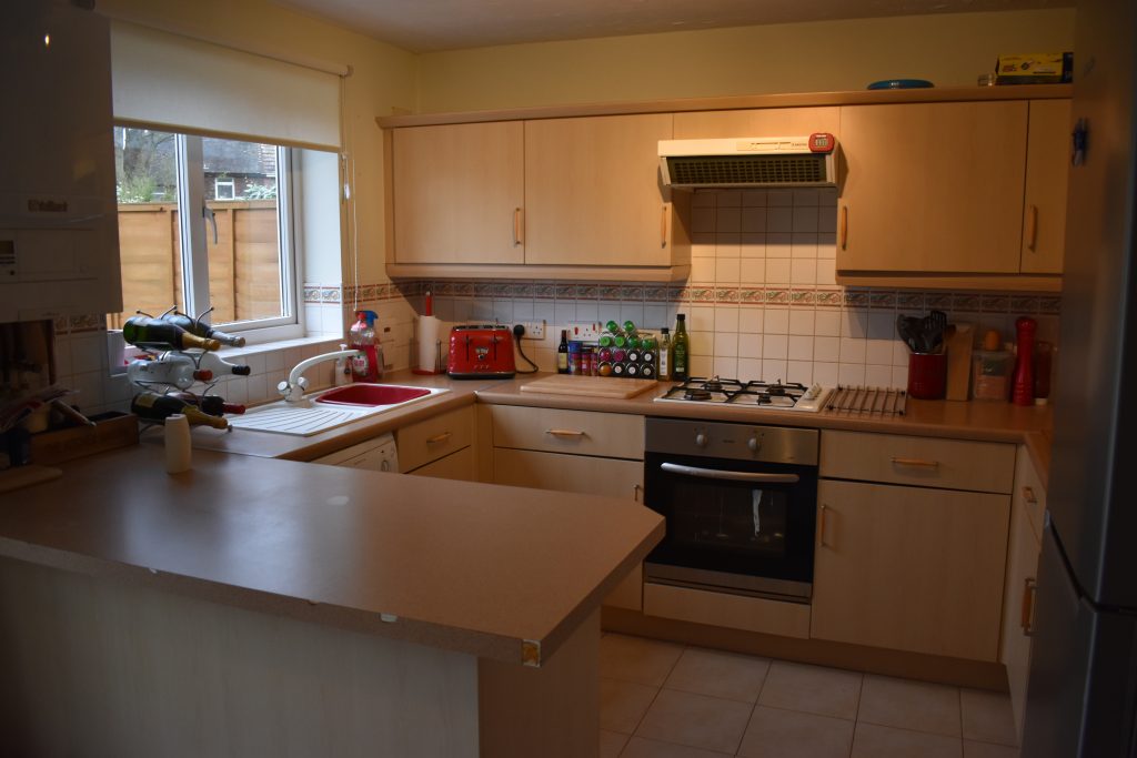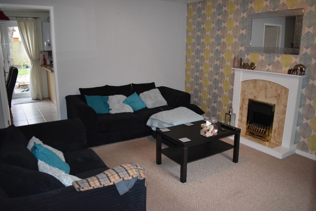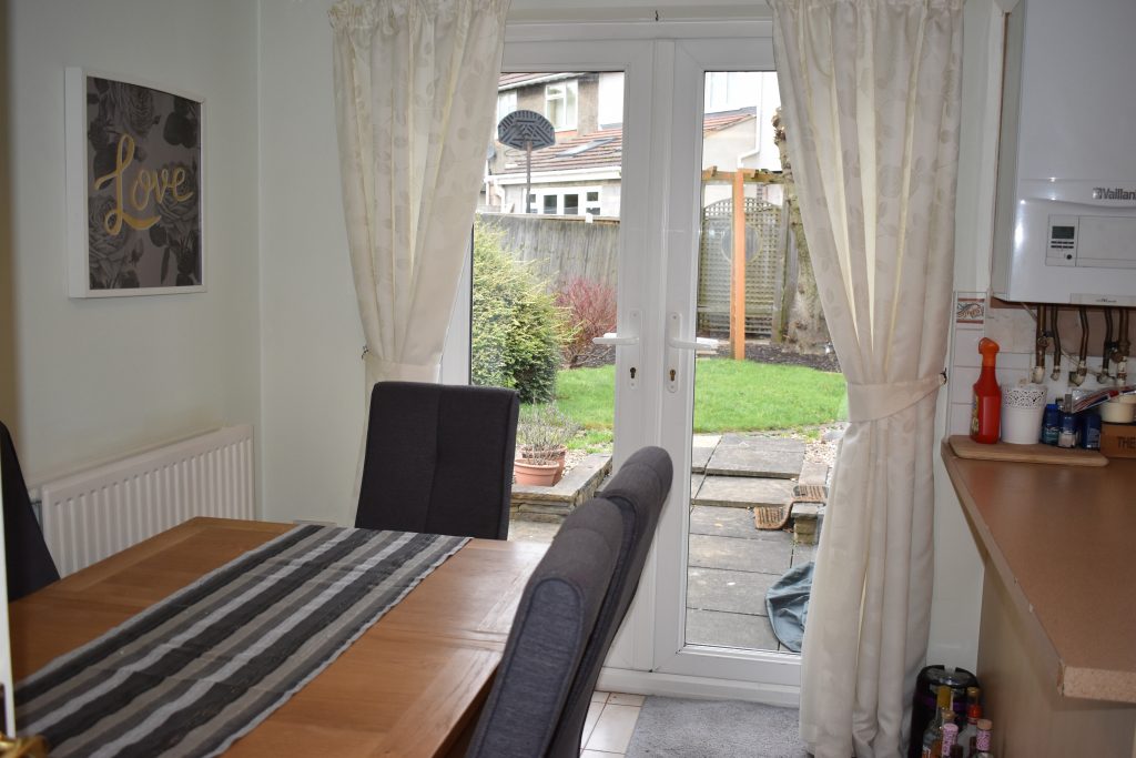 With radiator, power points, ceiling light point, space for fridge freezer, space and plumbing for washing machine, four ring gas hob, extractor over integrated oven, tiled floor, UPVC double glazed window to the rear and UPVC double glazed patio door to the rear.