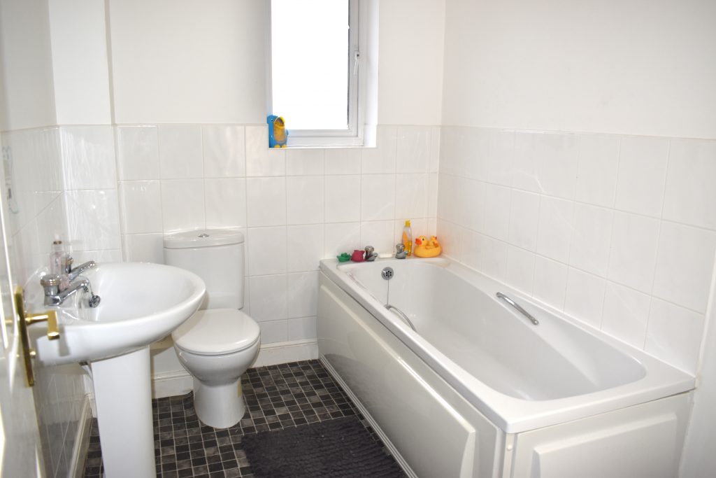 With UPVC double glazed opaque window to the rear, close coupled W.C., pedestal wash hand basin with tiled splashback, thermostatically controlled radiator and ceiling light point.