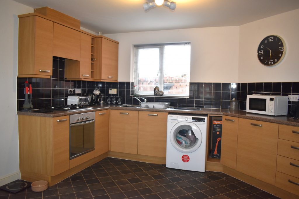The kitchen has been fitted with a range of wall and base units with co-ordinating work surfaces and tiled splashbacks, single drainer stainless steel sink with chrome mixer tap, space and plumbing for washing machine, space for fridge freezer, four ring stainless steel gas hob with extractor and integrated oven and grill. The dining area has a UPVC double glazed window to the front, power points and ceiling light point.