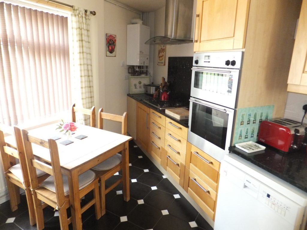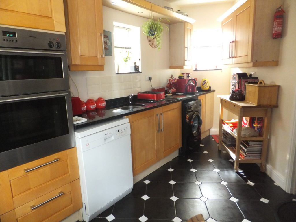 Which has UPVC double glazed windows to the front, rear and side, ceiling spot lights, ceramic floor tiling, radiator, power points and wall mounted combination boiler (installed in November 2014 and serviced yearly). The kitchen has been fitted with wall and base units, attractive granite counter tops and splash backs, five ring stainless steel gas hob with granite splash back, glazed canopy style stainless steel illuminated extractor, space and plumbing for dishwasher, space and plumbing for washing machine and space for American style fridge freezer.