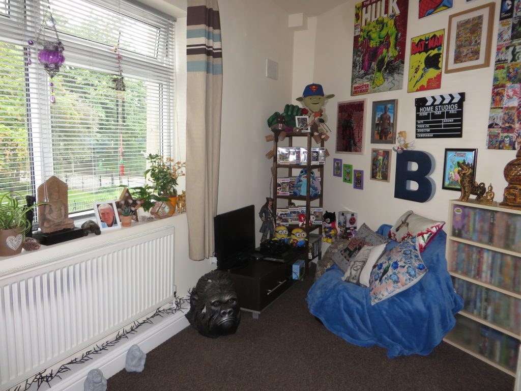 With UPVC double glazed window to the front, radiator, power points, ceiling light point, TV aerial point and built-in storage cupboard.