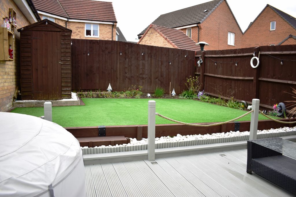The rear garden is fully enclosed with fencing and offers an attractive decking area with pebbled borders and a low maintenance lawn area. There is a path leading to the front of the property.
