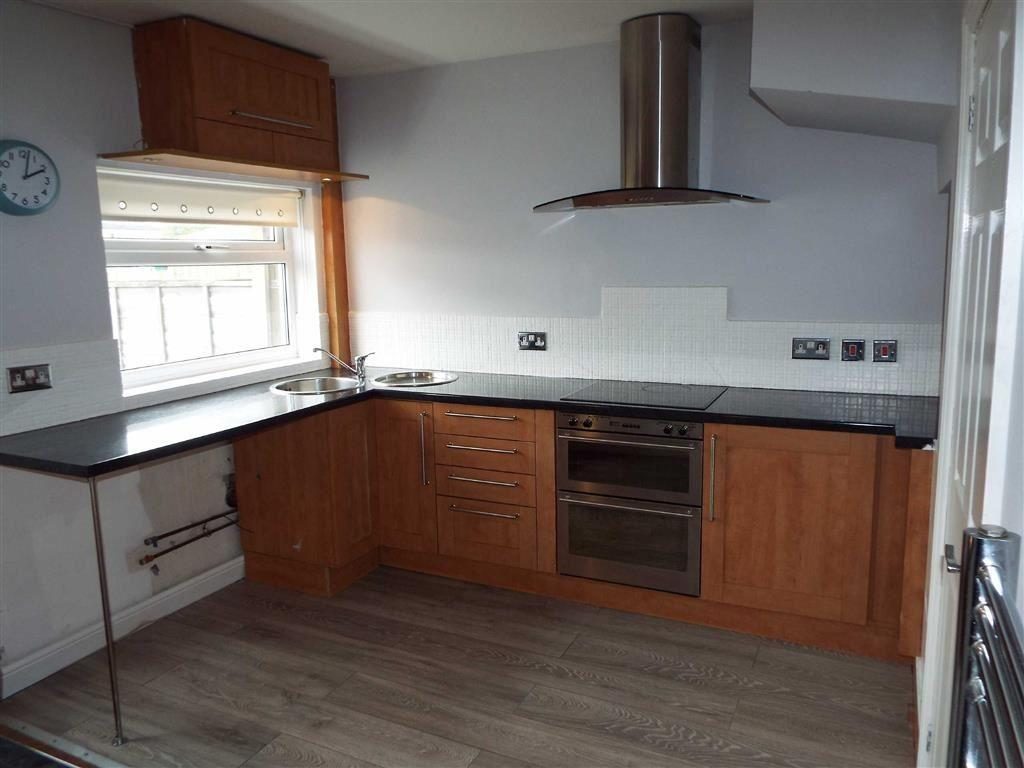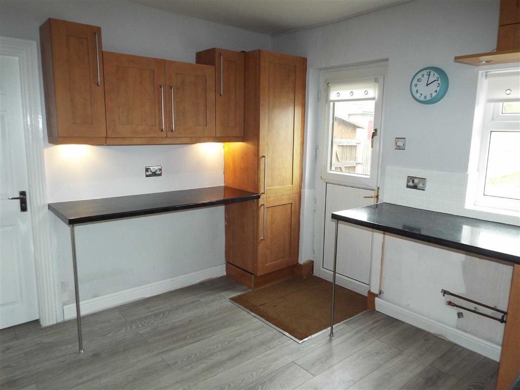 With UPVC double glazed window to the rear, thermostatically controlled radiator, ceiling light point, numerous power points, a range of wall and base units with roll top work surfaces and coordinated tiled surround, integrated double oven and grill with four-point hob, single drainer stainless steel sink with chrome mixer taps, space and plumbing for washing machine, space for fridge, space for freezer and UPVC double glazed door to rear garden.