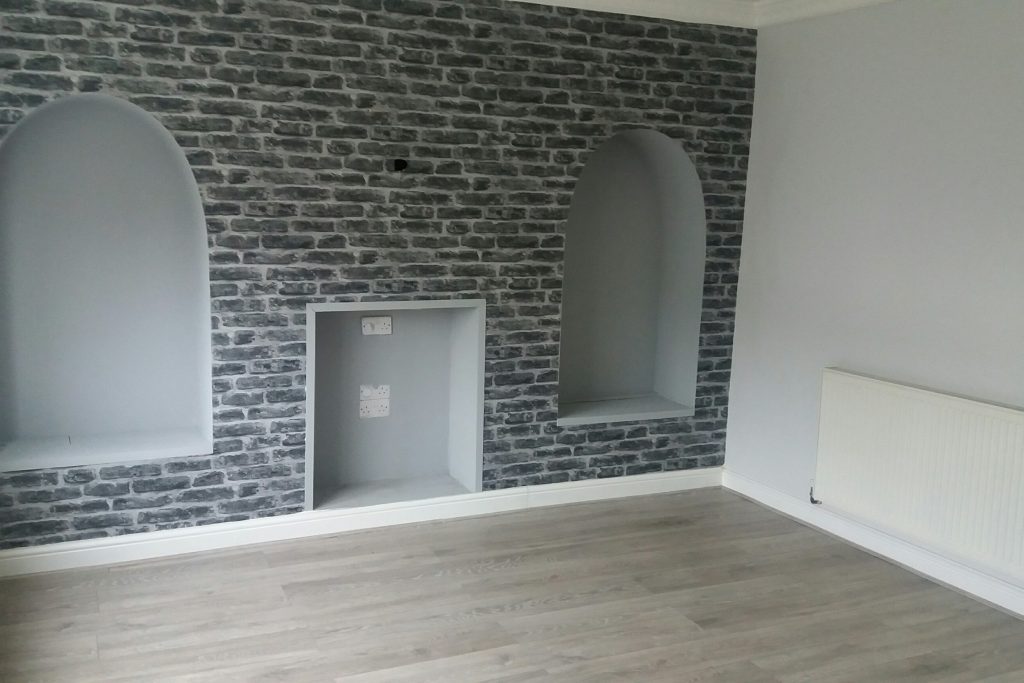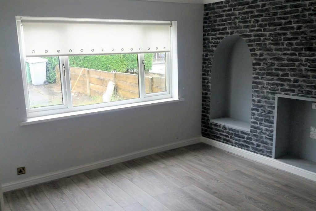 The lounge has UPVC double glazed window to the front, radiator, power points, TV aerial point, ceiling light point and attractive display areas either side of the chimney breast.