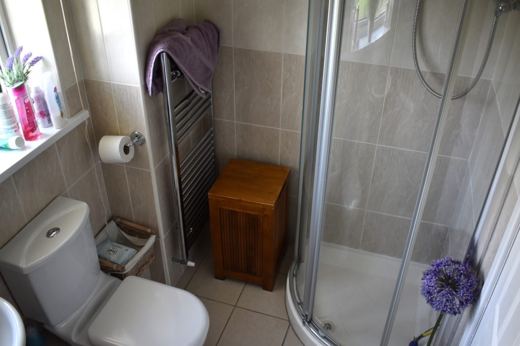 The stunning bathroom has been fitted with a four-piece white suite comprising a freestanding roll-top bath with claw feet and shower head mixer taps over, a corner shower enclosure, pedestal wash hand basin and a close-coupled W.C. The bathroom is fully tiled and has a chrome towel rail radiator, UPVC double glazed window to the rear and a ceiling light point.