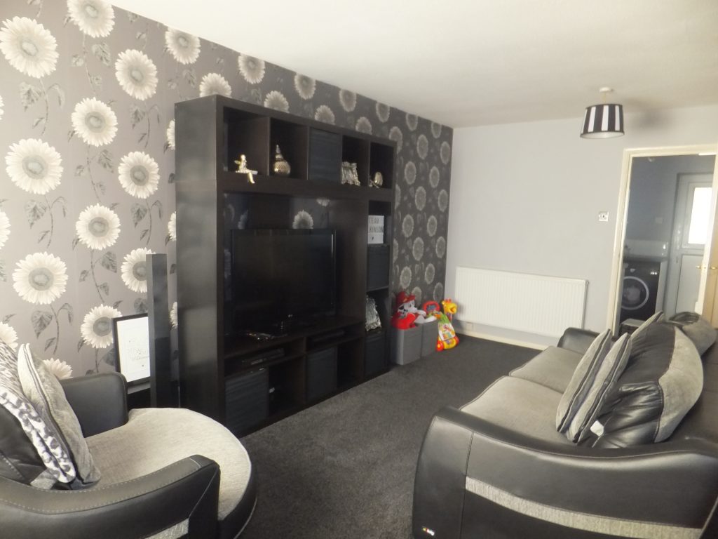 With UPVC double glazed window to the front, thermostatically controlled radiator, power points, ceiling light point, stairs to first floor landing and door to under stairs storage cupboard.
