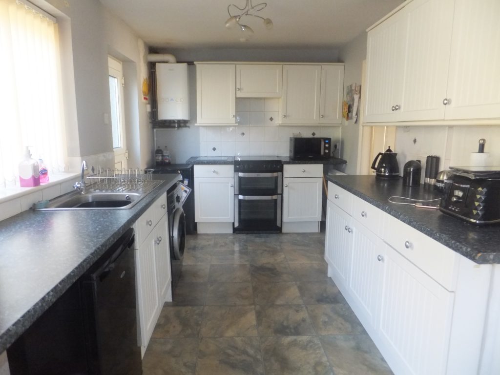 The kitchen area has a range of wall and base units with roll top work surfaces, wall mounted Logic combination boiler, UPVC double glazed stable door to the rear, space and plumbing for washing machine, space for fridge, space for freezer, space for cooker, thermostatically controlled radiator, ceiling light point, UPVC double glazed window to the rear and power points.