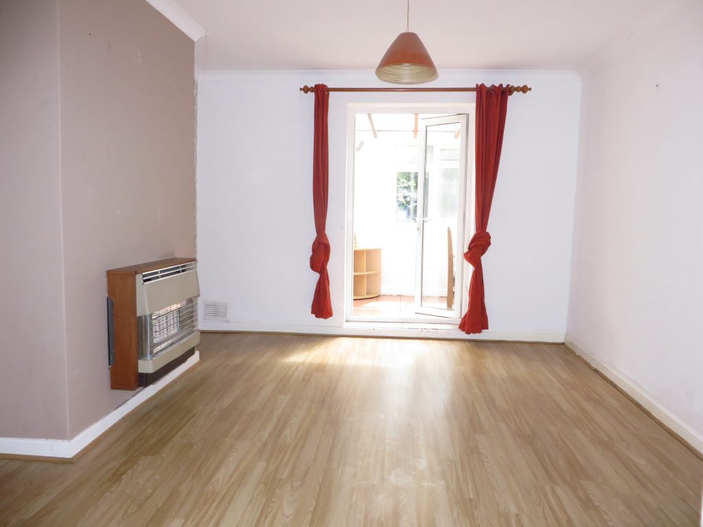 This is a spacious living room which is separated into two distinct areas by a centralised square archway. The lounge area has UPVC double glazed bay window to the front. radiator, power points, TV aerial point and ceiling light point. The dining area has radiator, wall mounted fire, power points, ceiling light point and double-glazed doors opening into the conservatory.